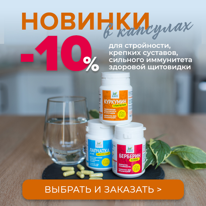 Дорогие клиенты! Мы рады представить Вам наши новинки, которые были изготовлены с заботой о вашем здоровье. В результате слияния знаний о традиционных способах лечения заболеваний в разных странах и о современных методах производства были созданы совершенно новые продукты с максимальной пользой для Вас. Берберин поможет в поддержании здорового веса и обмена веществ. Лапчатка станет надежным помощником для вашей щитовидной железы. А куркумин сохранит здоровье суставов и укрепит иммунитет. Здоровье – это ценность, и мы рады быть частью вашего пути к благополучию!