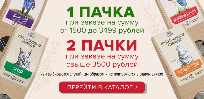 Это ещё не всё! Наши постоянные покупатели знают, что история Алтайвита началась с травяных сборов. И до сих пор чаи с алтайскими травами – наша гордость. Они завоевывают золотые медали на всероссийских выставках, их знают по всему миру, и вообще, в них вся любовь и душа нашей компании, которыми мы рады делиться!