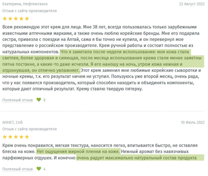 Вот несколько отзывов о креме "Таёжный". Это питательный антивозрастной крем на основе мумиё: