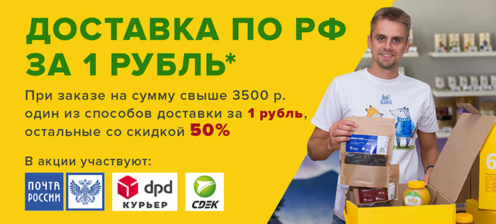 Напоминаем, при заказе на сумму свыше 4000 рублей один из способов доставки за 1 рубль, остальные со скидкой 50%.