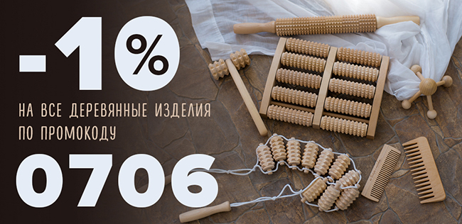По промокоду 0706 на весь ассортимент деревянных изделий можно получить скидку 10%. Обязательно введите промокод 0706 в специальное поле в корзине сайта или назовите его оператору при оформлении заказа по телефону. Предложение действительно до 20 июня или до окончания акционного товара.