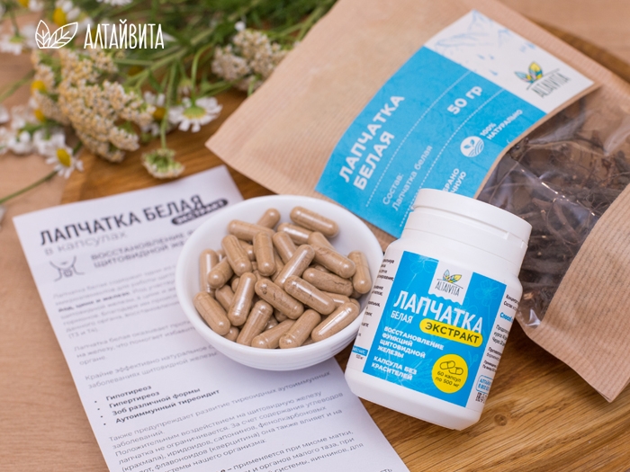 В нашем магазине Вы можете заказать цельные сушеные корни лапчатки белой и экстракт лапчатки в удобных капсулах. Также, лапчатка белая является одним из ключевых компонентов легендарного сбора "Эндокринорм", направленного на нормализацию работы щитовидной железы. Он доступен в виде сбора для заваривания и в форме капсул.
