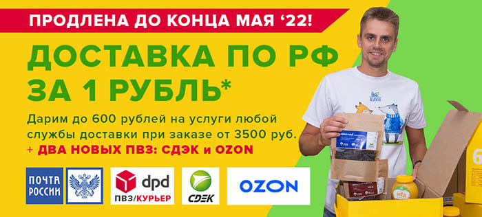 Напоминаем! Бесплатная доставка по РФ продлена до конца мая 2022. Чтобы узнать подробности, нажмите на баннер ниже