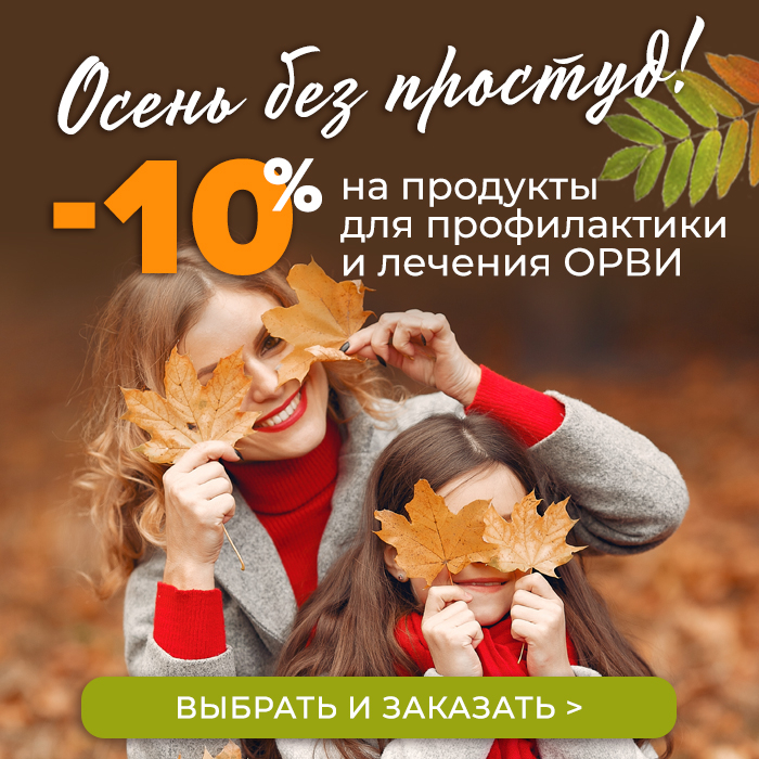 До 20 сентября все продукты в категории "ОРВИ" доступны с выгодой 10%. Мы с радостью ждём ваши заказы и желаем вам провести эту осень (а также зиму и весну) без простуд!