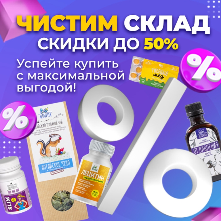 С радостью ждём вас – приходите, выбирайте и заказывайте полезные товары с выгодой до 50%. А мы будем освобождать склад под новые полезности. До встречи в интернет-магазине Алтайвита!