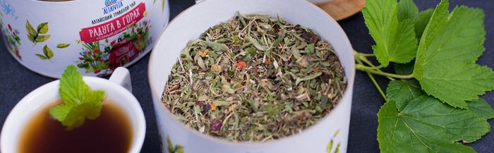 "Радуга в горах" – яркий витаминный сбор с насыщенным вкусом и самыми полезными для иммунитета травами: курильским чаем, душицей, шиповником, мелиссой, чабрецом и листом горной смородины.