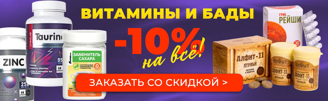 До 19-го сентября все продукты категории Витамины и БАДы доступны со скидкой 10%. На сайте мы подробно описали каждый продукт, его состав, сферу и способы применения – есть всё на все случаи жизни! Цены указаны с учётом скидки.