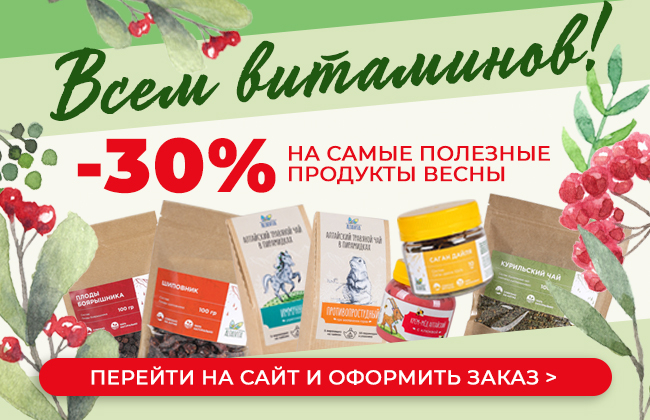 От недостатка витаминов страдают все без исключения: от малышей до людей преклонного возраста. Весна – прекрасное время года, не стоит проводить её в депрессии и апатии. Заряжайтесь витаминами, бодростью и энергией натуральным и безопасным способом вместе с нашими алтайскими продуктами. Закажите набор витаминных продуктов со скидкой 30% прямо сейчас и будьте здоровы >>> ЗАКАЗАТЬ