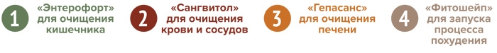 "ВИТАСЛИМ" — это 4-ступенчатый комплекс для снижения веса на основе растительных компонентов. Он направлен на детоксикацию сразу нескольких систем организма, состояние которых напрямую влияет на процесс похудения.