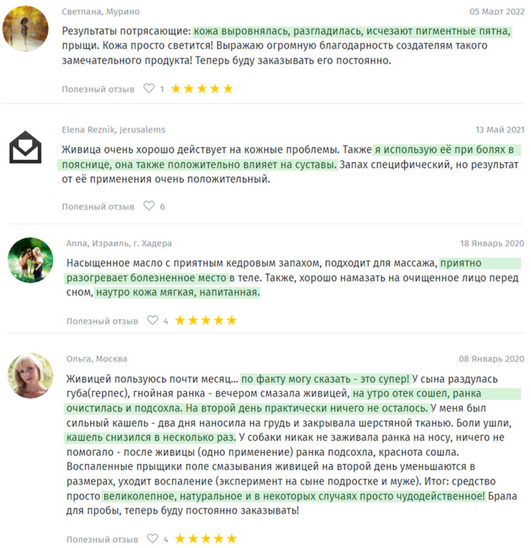 Живица на кедровом масле – новый продукт, в отличие от живицы на льняном, которая уже больше 5-ти лет в нашем ассортименте и стабильно пользуется любовью покупателей. Вот только некоторые из благодарных отзывов: